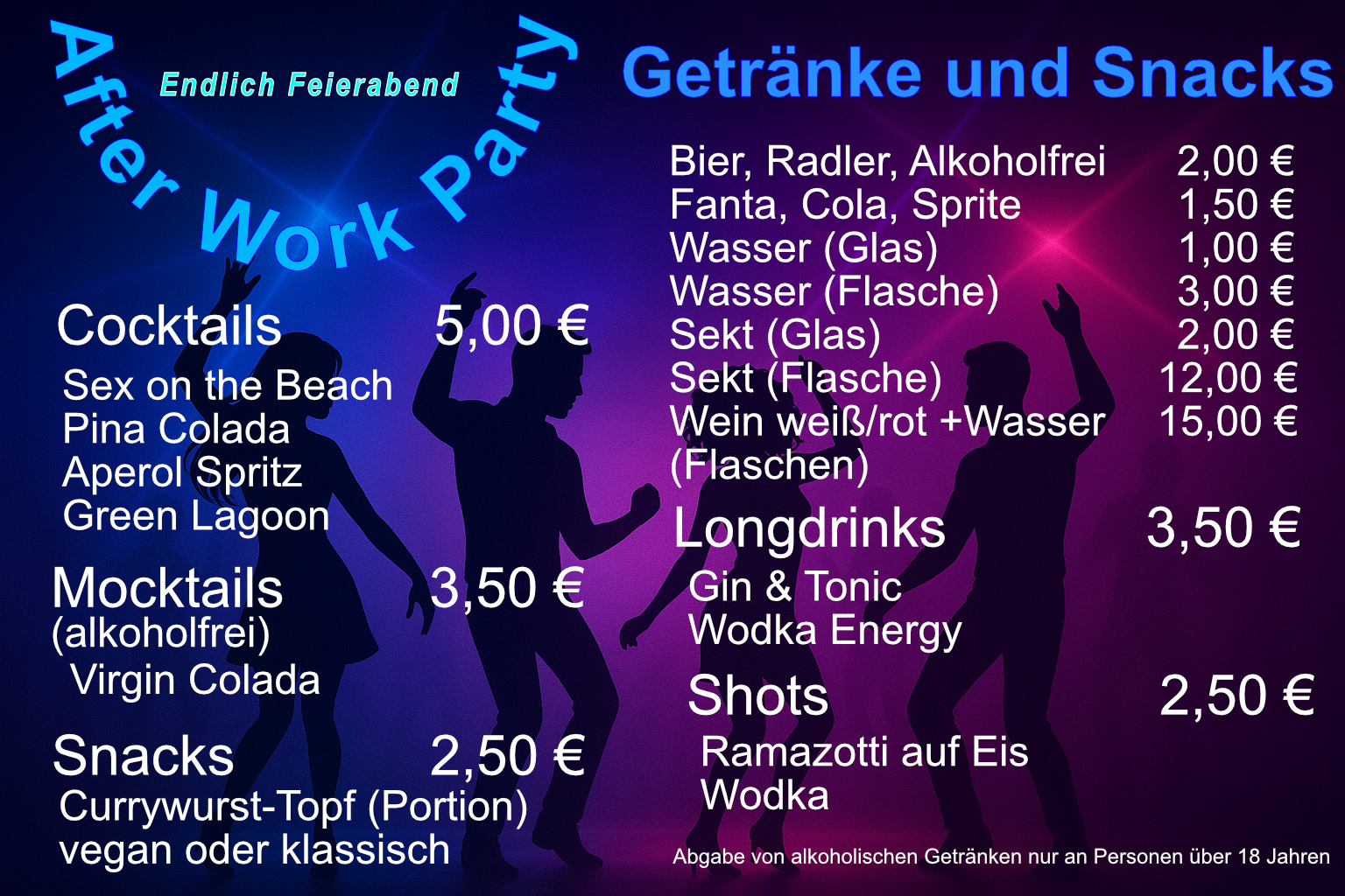 Große Ereignisse werfen ihre Schatten voraus. Die nächste After Work Party ist bereits in Planung.